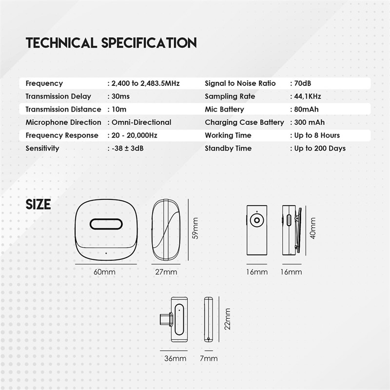 Veličina mikrofona (16*16*40) mm